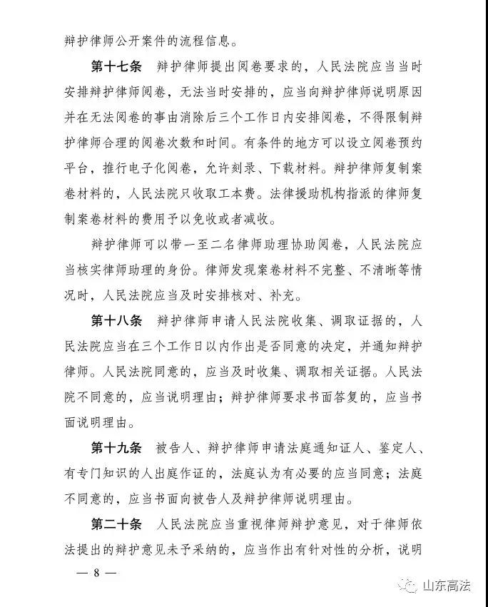 山东高院与山东省司法厅联合印发刑事案件律师辩护全覆盖试点工作办法