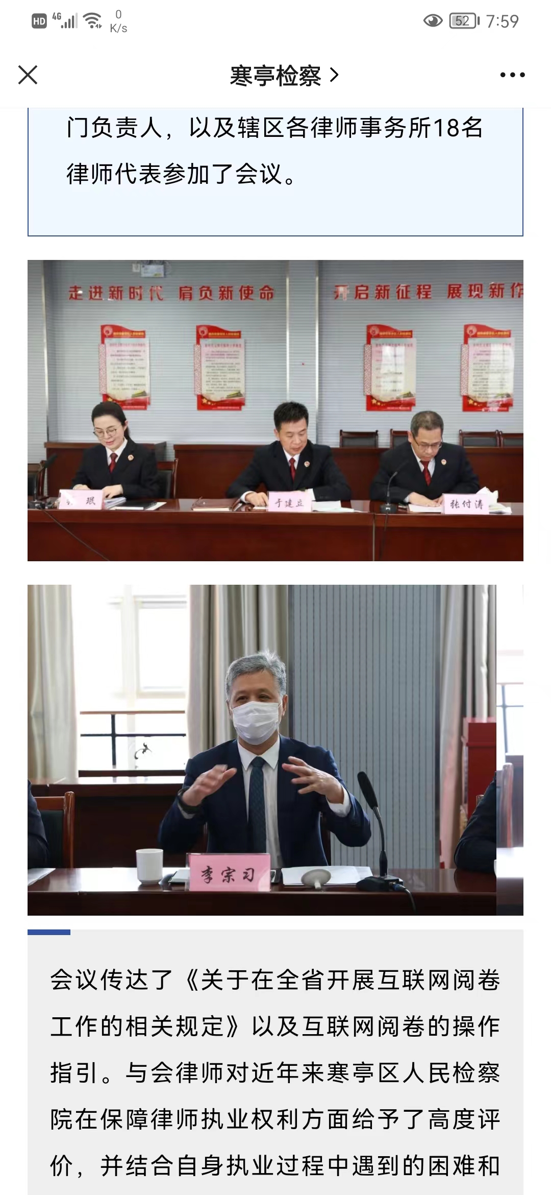 李宗习律师参加寒亭区人民检察院“加强检律互动 共同维护司法公正”主题座谈会