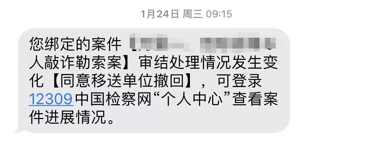 【撤回移送审查起诉的短信提示】